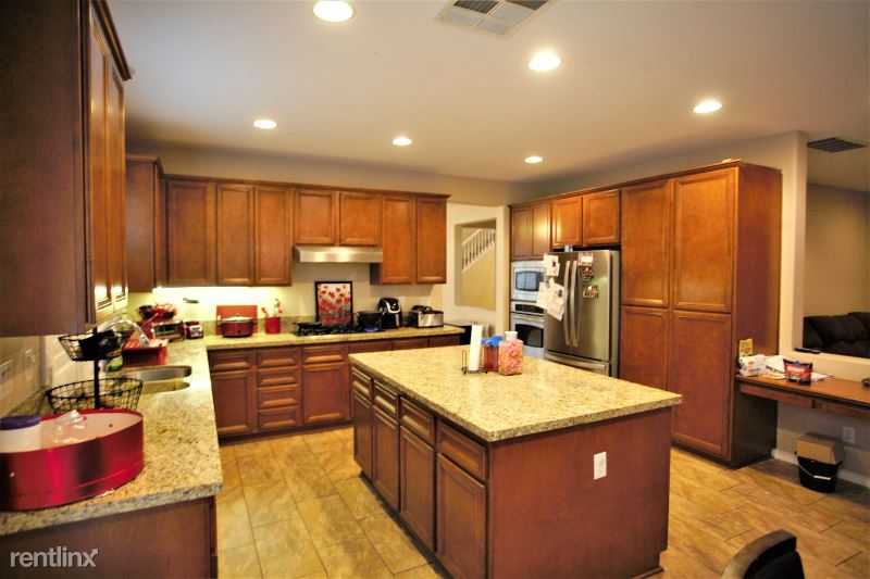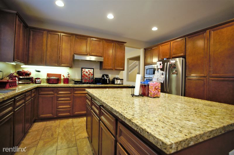 This amazing home is located in the exclusive guard gated enclave of Greer Ranch. Featuring 4b/2.5b, 3 car garage. Natural light throughout. First floor has open gourmet kitchen featuring granite countertops, center island, stainless steel appliances, oak cabinetry and 5 burner cook top. Plenty of shelving space for storage. Also on first floor is half bathroom, and office/den. Open family room w/ electric fireplace. Large dining and entertaining area. Window shutters throughout add a stylish look and easy to maintain. Upstairs features a master suite with double sinks, granite countertops, separate shower, soaking bathtub, and large walk-in closet. Three additional bedrooms upstairs and double sink vanity bathroom. Laundry room is conveniently located upstairs along with Samsung washer and dryer. Huge backyard. Solar panels installed on roof which saves renter annually in electricity.