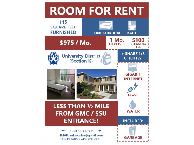 Furnished Room For Rent – Steps From Ssu!