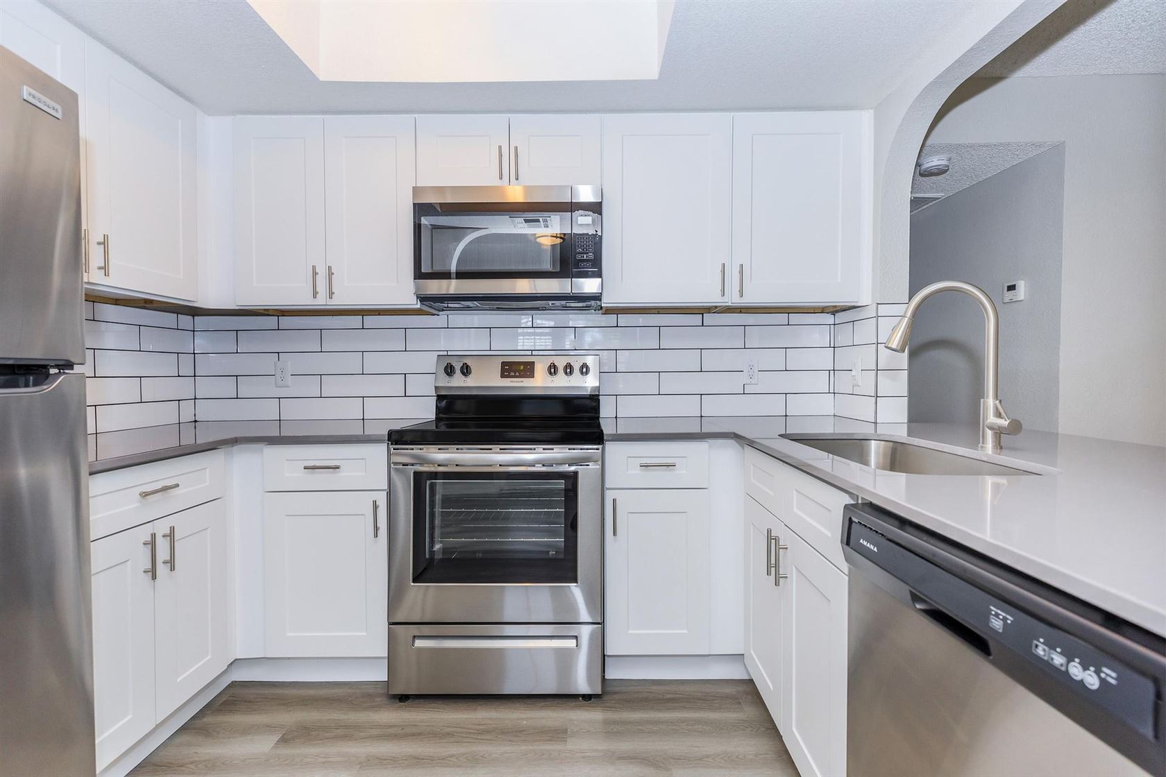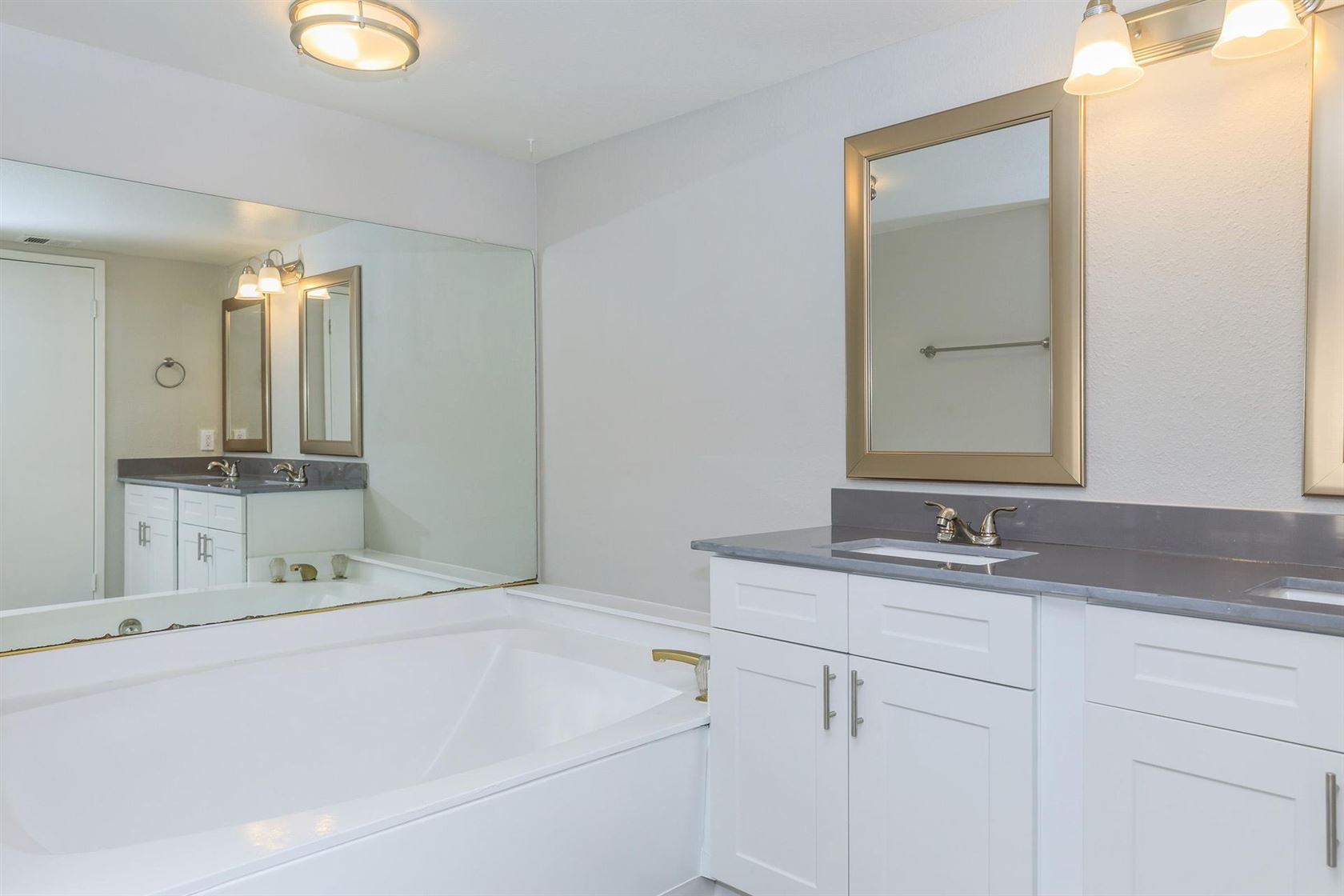 Be greeted with an open living room that is so ideal for entertaining and a kitchen that doesn't feel mass-reproduced and lacking character. Your bedrooms are spacious with private patios and glass French doors and the master is complemented with a large soaking Roman tub that is rarely seen in today's modern communities.