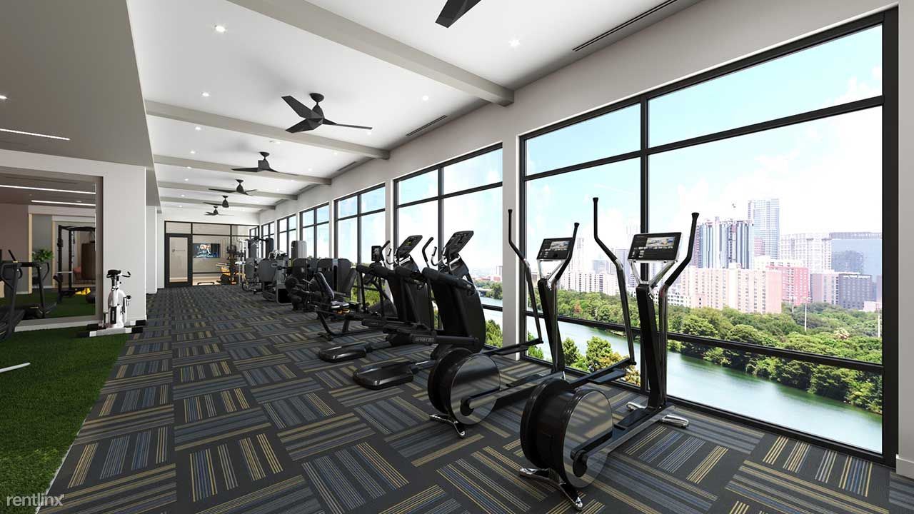 24-Hour fitness center with cross-fit style equipment, free weights, Pelotonâ„¢ spin room and panoramic views of Lady Bird Lake