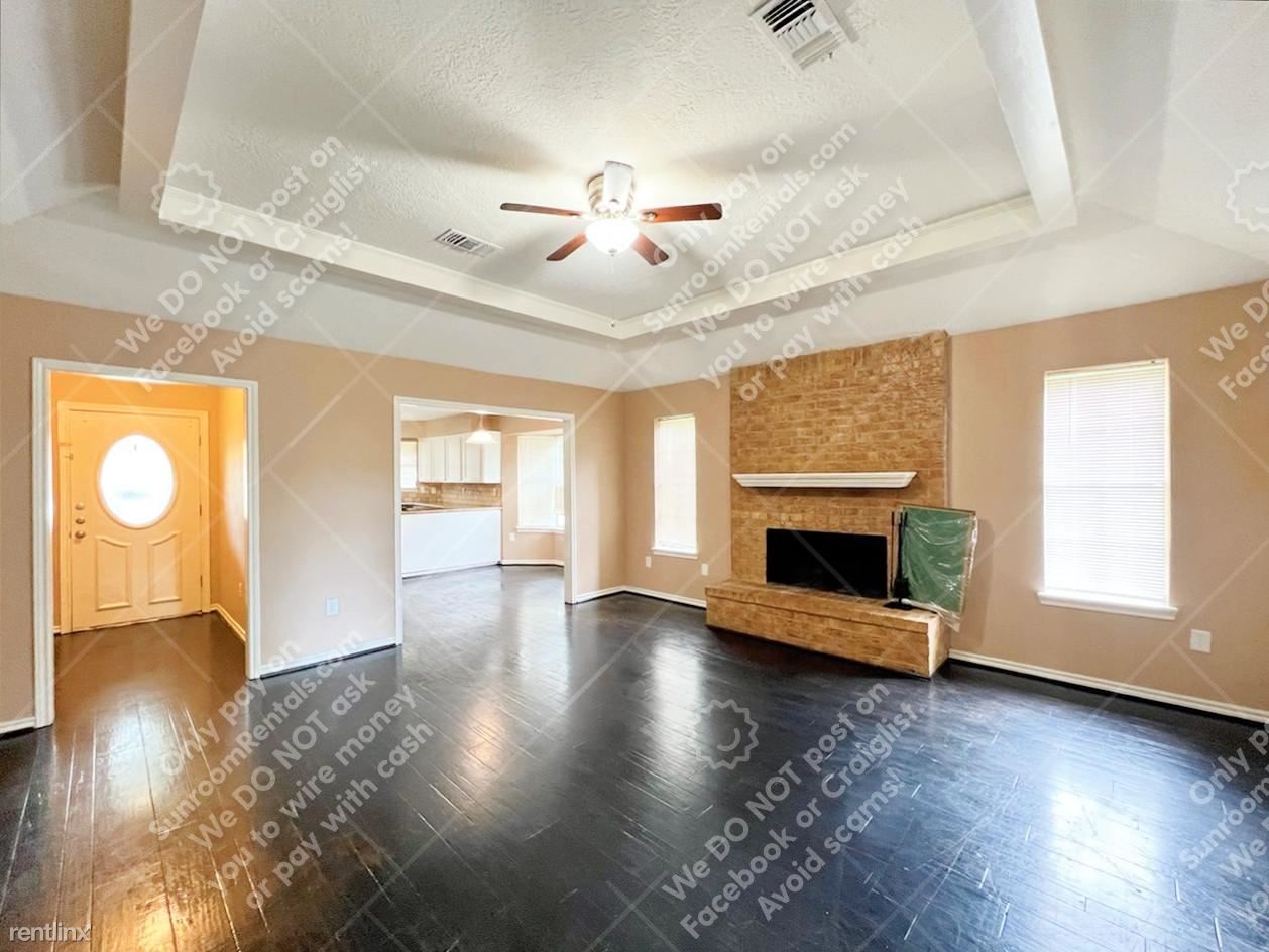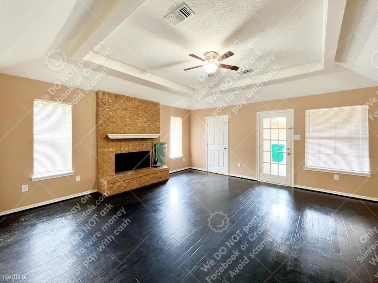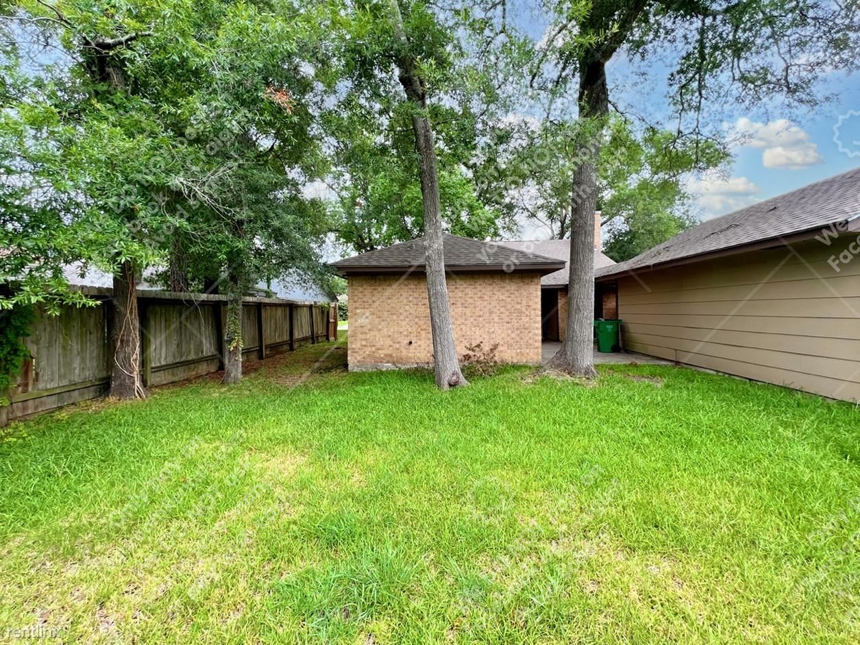 Introducing 9834 Cherokee St, a lovely home located in Baytown, TX. This 1-story, 3-bedroom, 2-bathroom property boasts 1,460 sqft of living space, and a detached double-space garage, in a well-established neighborhood! Open the door to a spacious and functional floor plan with beautiful tray ceilings in the main living area, gorgeous dark wooden floors, a brick fireplace with a wooden mantel, and bright windows! Easy access to the kitchen with a bright breakfast nook with bay windows, top-of-the-line appliances, granite countertops with plenty of storage space, and chic white cabinetry. Venture into the bedrooms where you’ll find cozy carpeted floors and enough space to put your stamp on. The main bathroom includes a dual vanity, and a walk-in shower perfect for unwinding after work. Outside, you’ll find a wooden-fenced backyard ideal for family gatherings or the occasional morning workout. Don't miss the chance to tour and lease this home in this thriving Baytown TX, community!