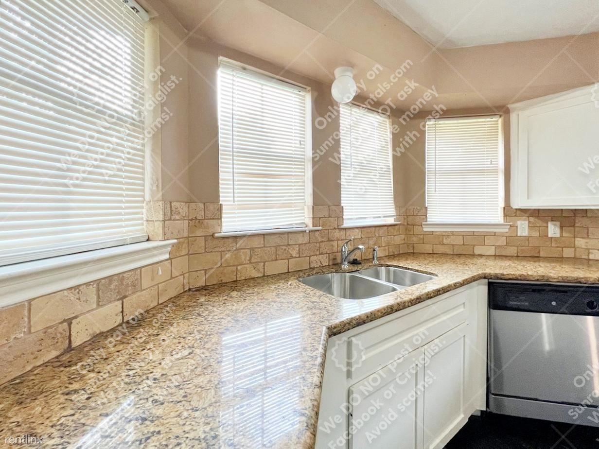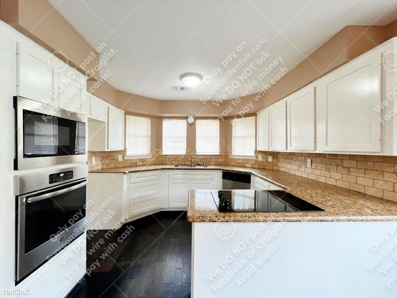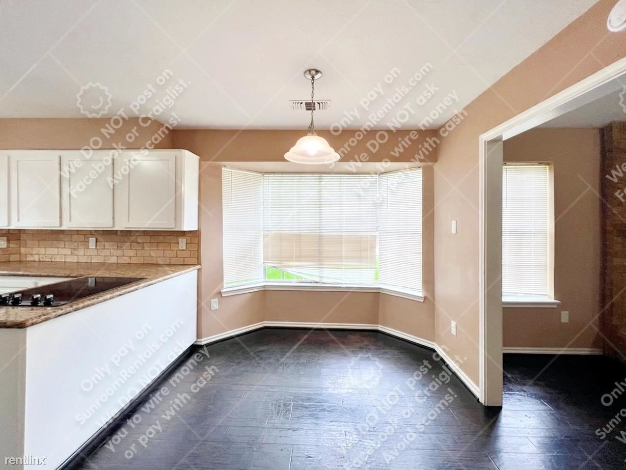 Introducing 9834 Cherokee St, a lovely home located in Baytown, TX. This 1-story, 3-bedroom, 2-bathroom property boasts 1,460 sqft of living space, and a detached double-space garage, in a well-established neighborhood! Open the door to a spacious and functional floor plan with beautiful tray ceilings in the main living area, gorgeous dark wooden floors, a brick fireplace with a wooden mantel, and bright windows! Easy access to the kitchen with a bright breakfast nook with bay windows, top-of-the-line appliances, granite countertops with plenty of storage space, and chic white cabinetry. Venture into the bedrooms where you’ll find cozy carpeted floors and enough space to put your stamp on. The main bathroom includes a dual vanity, and a walk-in shower perfect for unwinding after work. Outside, you’ll find a wooden-fenced backyard ideal for family gatherings or the occasional morning workout. Don't miss the chance to tour and lease this home in this thriving Baytown TX, community!