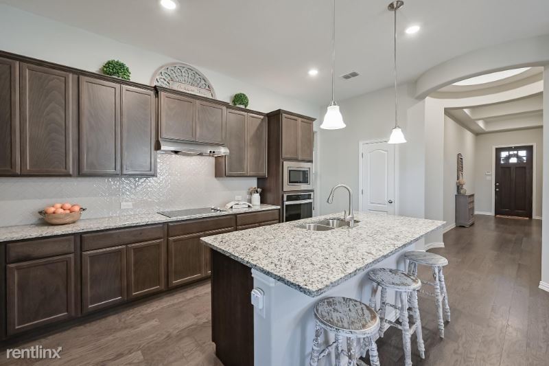 Welcome to your nearly brand new Gehan Home in a niche community! This stunning home features unique architectural work, tray & coved ceilings, beveled corners, and engineered hardwoods. With 5 beds , 3 full baths, and an oversized laundry room, it perfectly fits your family's needs. Enjoy the open concept living with a gorgeous kitchen, island, pendant lighting, granite counters, and herringbone backsplash. The primary bed & bath offer a serene retreat with massive windows, separate vanities, a garden tub, walk-in closet & separate shower. Relax on your private back patio.
