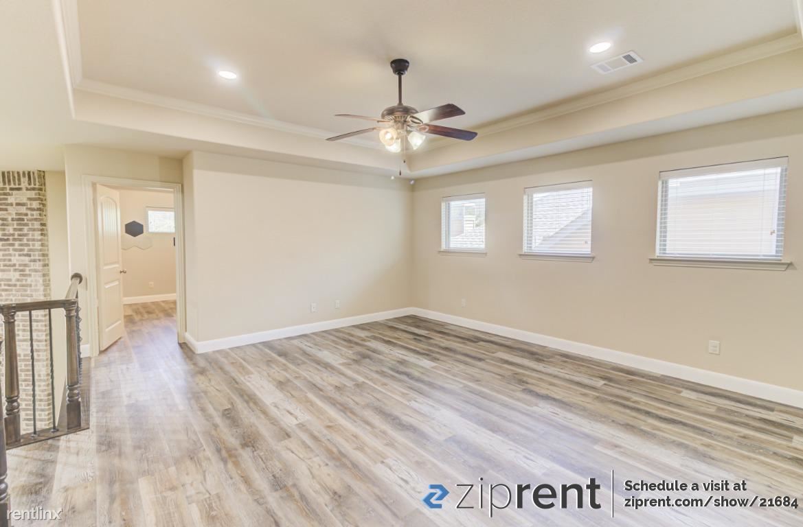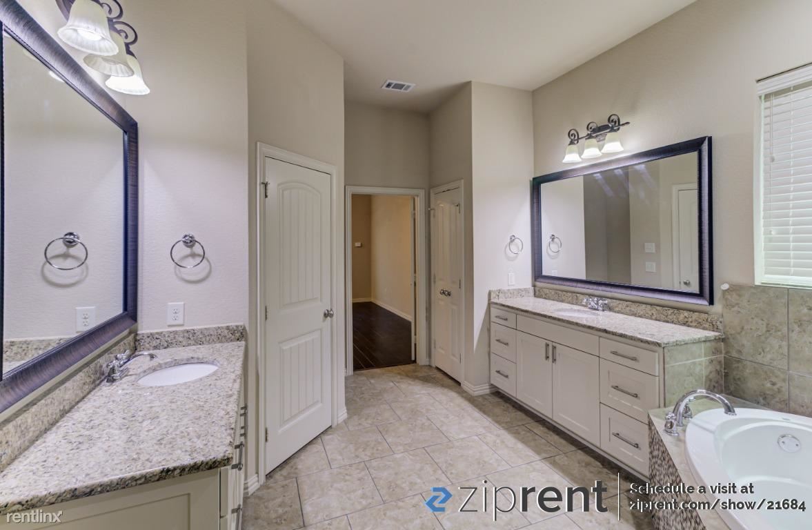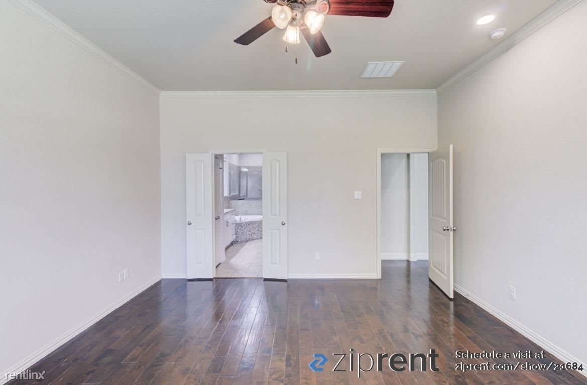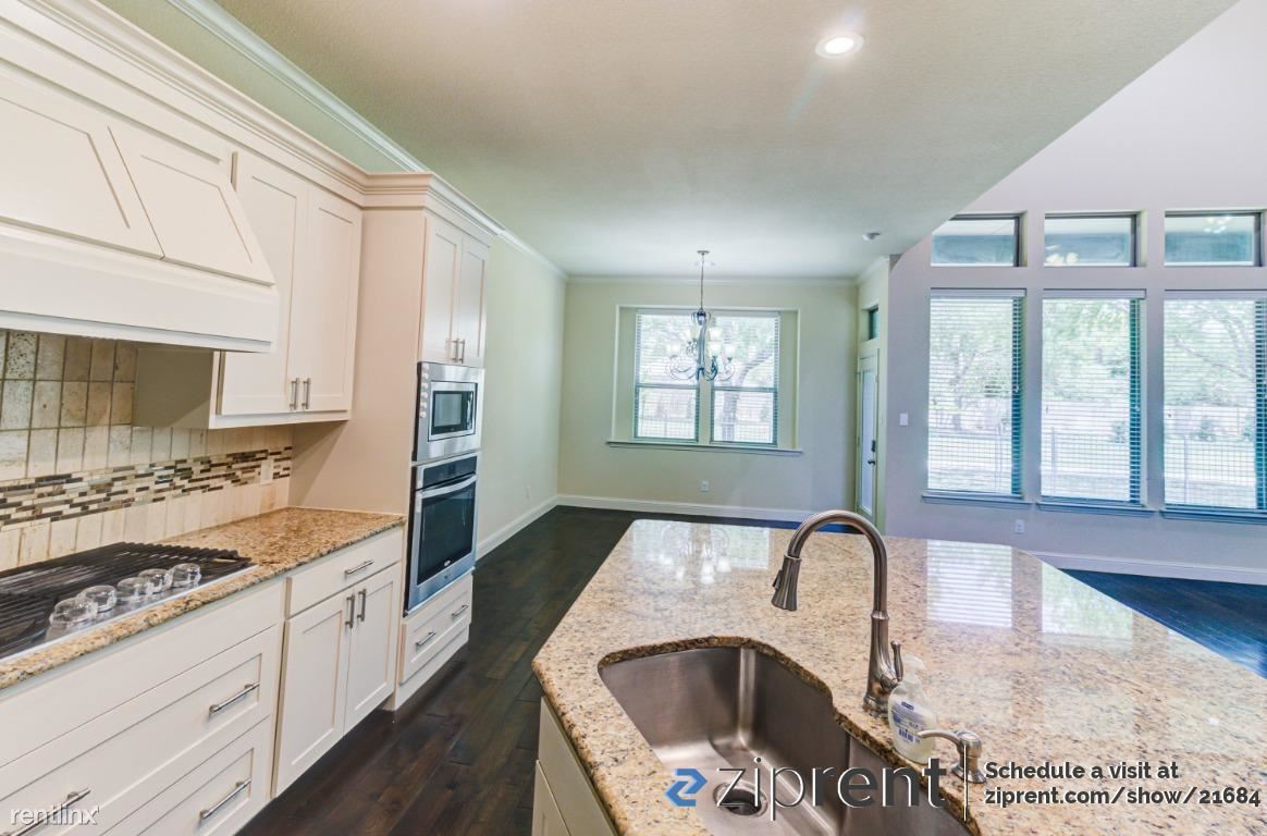 Beautiful 4 bedroom, 2.5 bath two story home AVAILABLE NOW in Fort Worth! This property features hardwood flooring on both floors, double pane windows, high ceilings, wide hallways, Whole house Water Softener installed, fenced in backyard, and plenty of natural light! The kitchen comes complete with all new appliances including refrigerator, microwave, oven/stove, dishwasher, and double bowl sink, massive island countertop, and ample room for storage in pantry and white cabinetry! The primary bedroom has an en-suite bathroom and massive walk-in closet! The bathroom has a separate tub & walk-in shower with sinks on each side. The other bedrooms have en-suite closets as well. Laundry room downstairs with washer & dryer included! Attached garage for parking. Garden facing house. Close to children play area and near to community lake access! Elementary school within walking distance!