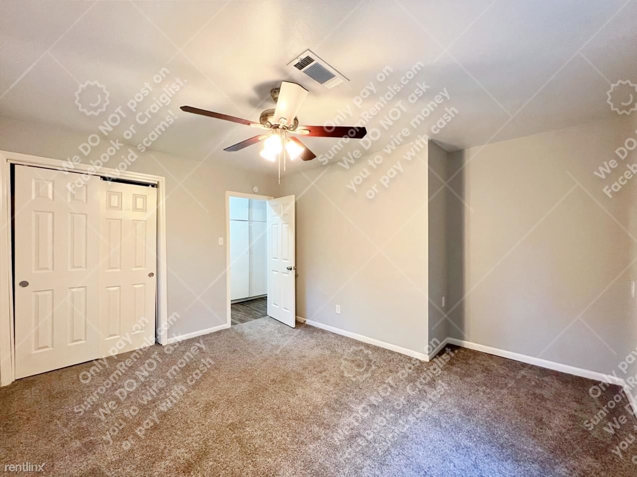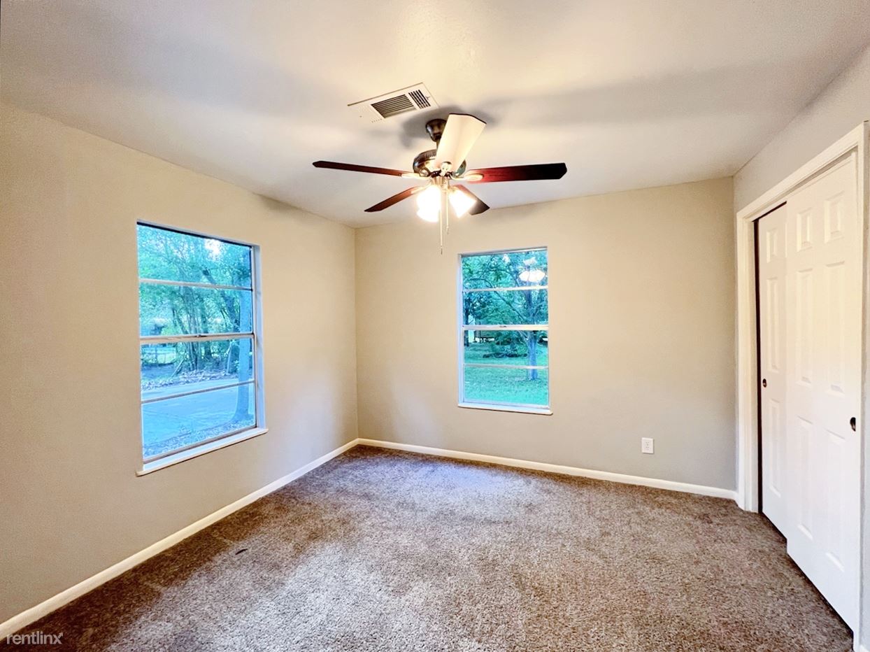 The bedrooms include cozy carpeted floors, spacious closets, and ceiling fans to keep you cool.
