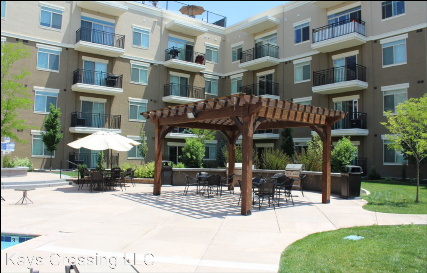 Our beautiful courtyard features a large pool and in-ground spa (open year-round), fire pit, and built-in BBQ grills for the best entertaining.
