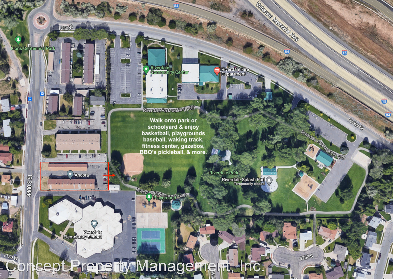 Remodeled Two Bedroom Next to Riverdale Park! 1 Month Free & $500 AmEx Gift Card! - https://portfolio.inspectorz.com/walkableTour/9neqR4ylNa2KPJPMAwd76VL3zgxZQj1p These fantastic Ancora apartments have undergone a full remodel, & are waiting to welcome new residents! Be the first to experience our modern upgrades! Ancora Apartments are located right next to Riverdale Park, and allow access to the Community Center, Splash Pad, and much more! Currently offering one month free (OAC)! Plus, receive a $500 Visa gift card! Must apply by 7/14! To set up a showing, contact us today! We invite you to please call or text (385) 333-7606 or email [email protected] Our Apartments Feature: - Electric Fireplaces - Brand New Flooring - Brand New Stainless Steel Appliances - Washer/Dryer Combo - Built in Microwave - Freshly Painted - New Vanity - Large Living Room Our Community is Located by: - Riverdale Park, Splash pad, & Senior center - The Crossing Shopping Center - Lions Centennial Park - Riverdale River Parkway and Kayak Park - Next to the I-15 Freeway on-ramp - Tons of Restaurants Concept Property Management Offers: - Exceptional Service - Certified Employees - 24hr Emergency Maintenance - Easy Online Payment Options We approve applicants that have credit in at least the 600's, clean backgrounds, positive rental history, and make at least 3 times the amount of rent per month. Once you apply, we can move your application to any property that we currently manage without you needing to reapply! Fees: - $15 On-site storage unit - $40 Covered parking - $60 W/S/T - $12.50 Liability insurance (Unless you have your own!) Pets: - $300 pet deposit for 1, $500 pet deposit for 2 - $50/month pet rent Utilities such as electricity & Internet are paid by residents.